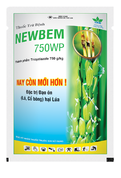 - Newbem 750WP - Không sợ kháng thuốc, không lo ảnh hưởng đến lá và bông lúa khi tăng liều hoặc phun chồng lối.