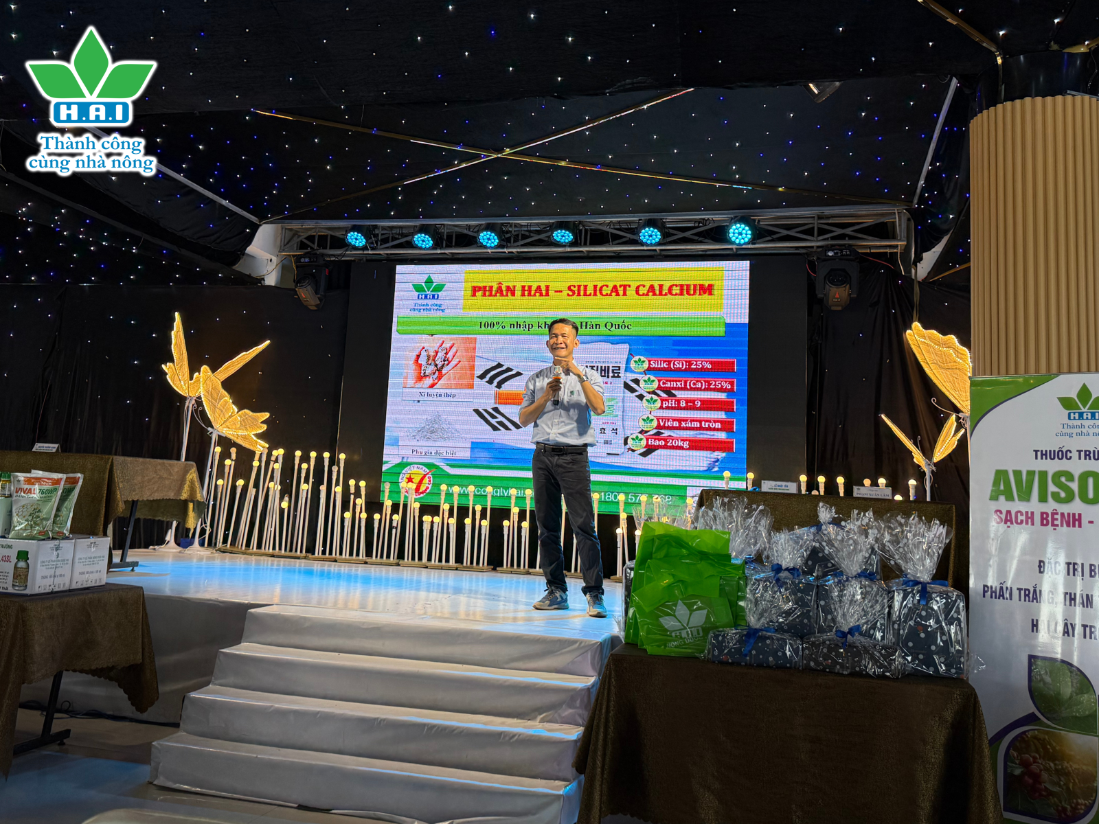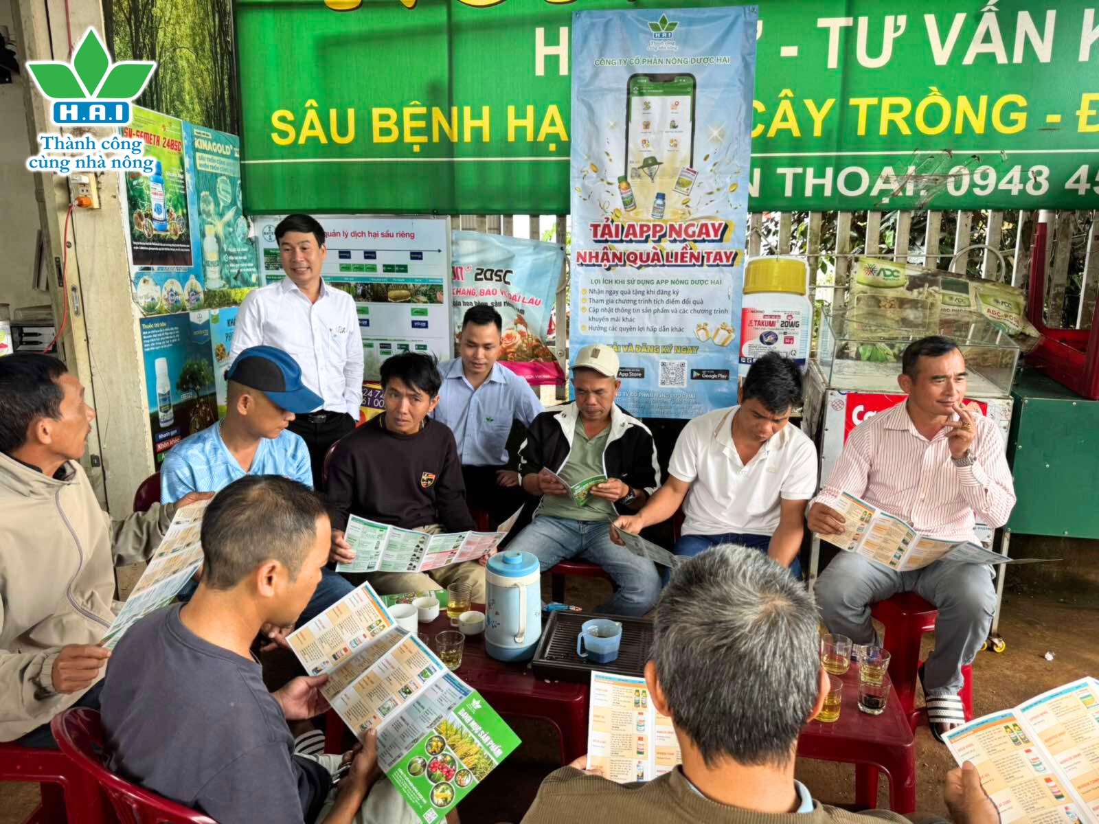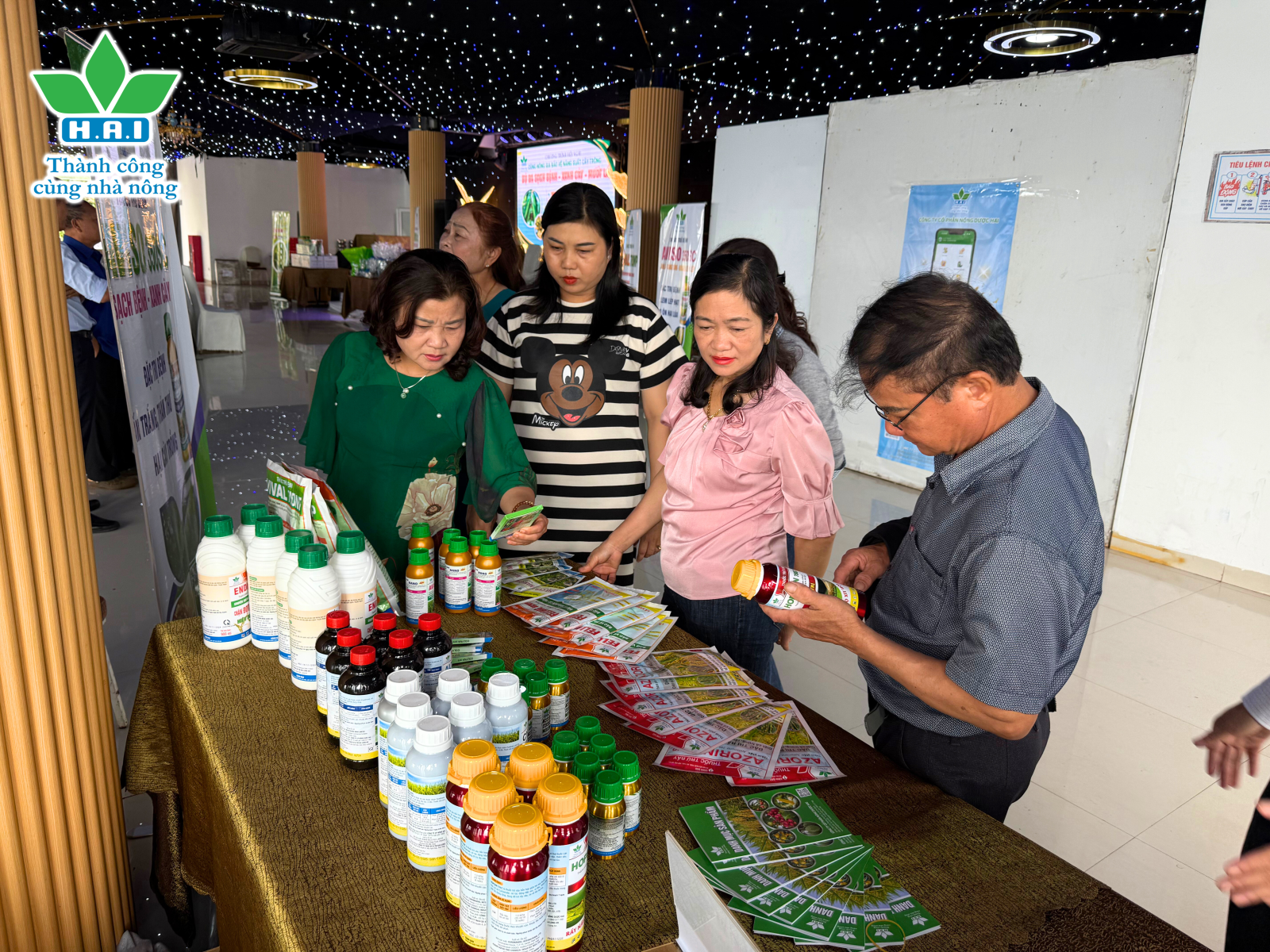 Chương trình là dịp để Nông Dược HAI cùng bà con giao lưu, chia sẻ những giải pháp chăm sóc Sầu riêng an toàn – hiệu quả và đạt năng suất cao. Đặc biệt, bộ giải pháp “SẠCH BỆNH – XANH CÂY – MƯỚT LÁ” với bộ ba sản phẩm AVISO 350SC – DEKAMON 22,43SL – VIVAL 760WP đã nhận được sự quan tâm lớn từ nhà vườn nhờ khả năng phòng trị bệnh hiệu quả, phục hồi nhanh và tăng sức đề kháng cho cây sầu riêng.