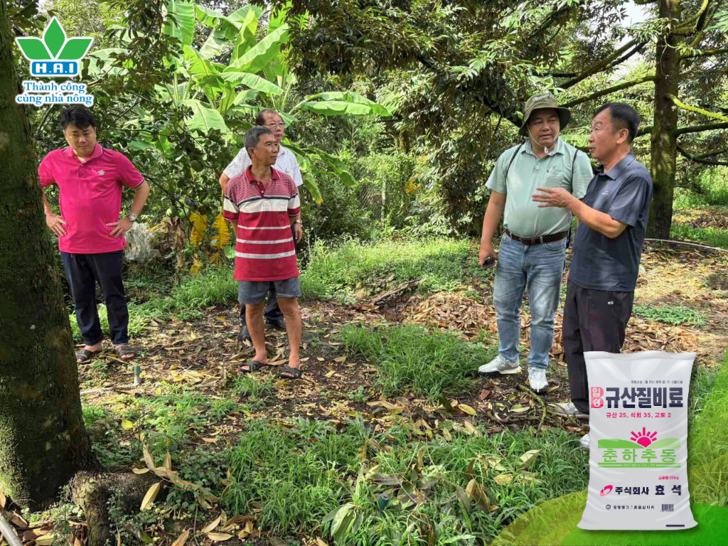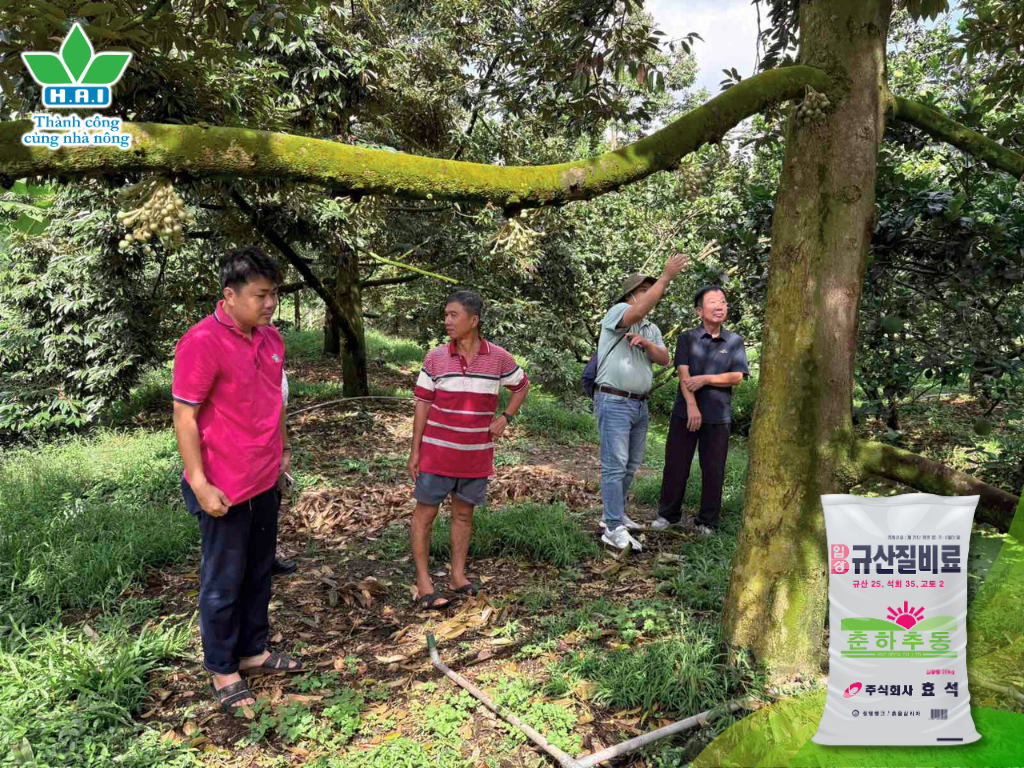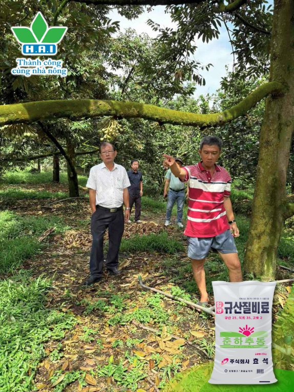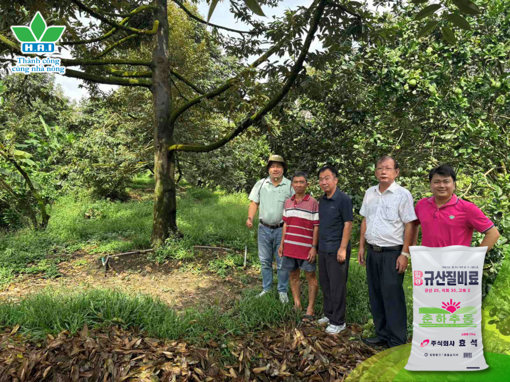 Vừa qua, Nông Dược HAI tiếp tục kết hợp Nhà sản xuất phân bón Hàn Quốc - HAI Silicate Calcium (SCF) ghé thăm vườn sầu riêng của nhà vườn Hà Kỳ Nhơn tại Phường Cai Lậy, Đồng Tháp.