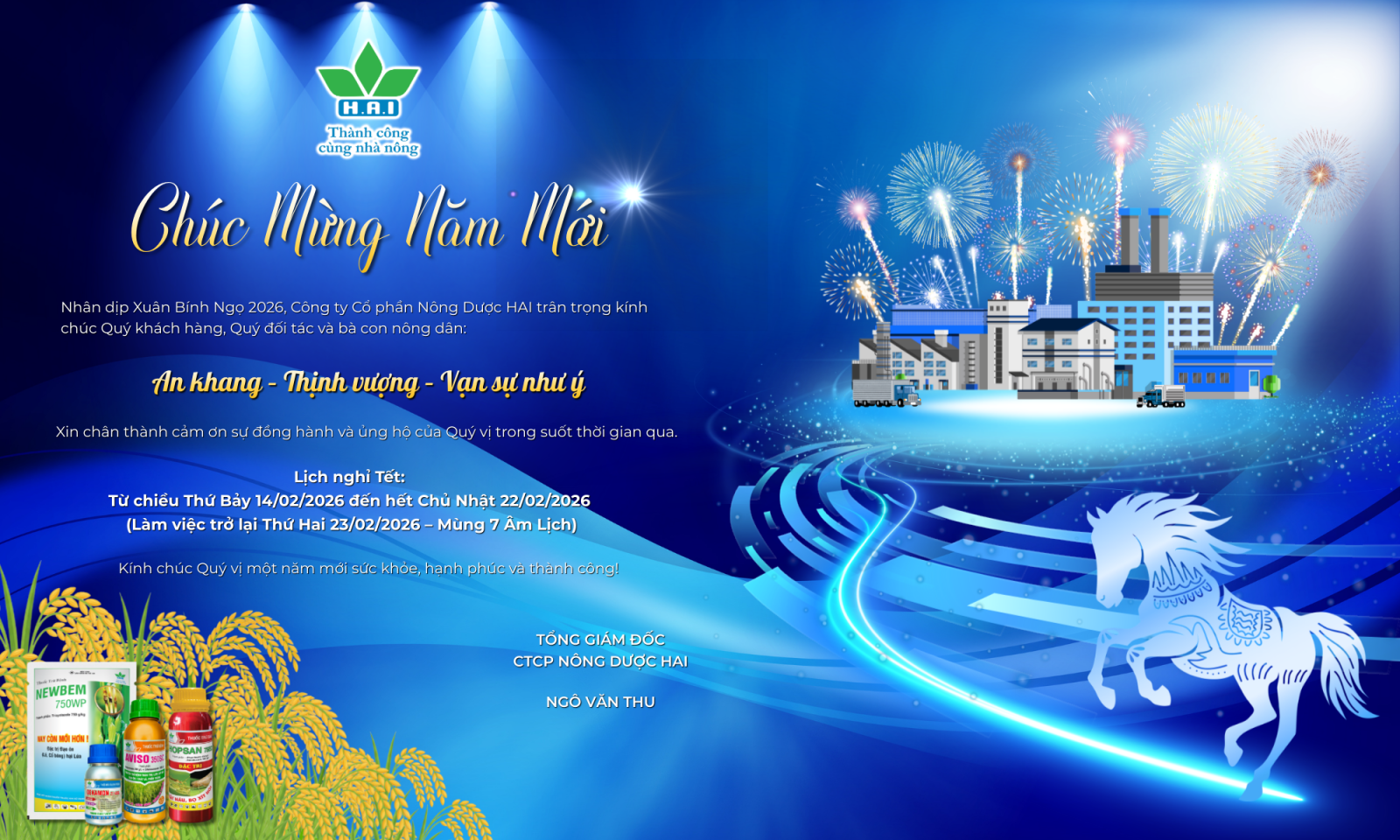 Kính gửi Quý khách hàng, Quý đối tác và Bà con nông dân, Nông Dược HAI xin thông báo Lịch nghỉ Tết Bính Ngọ 2026 như sau: